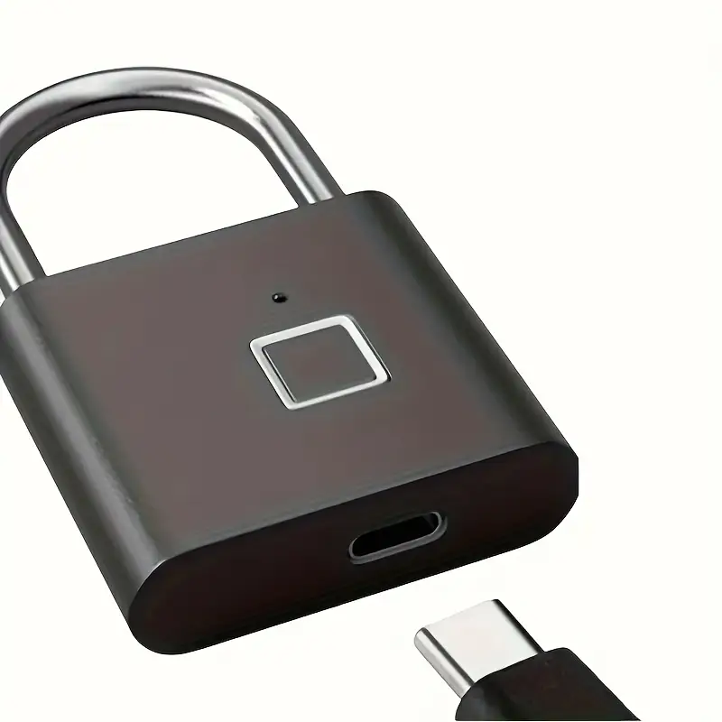 Secure your belongings with this mini smart fingerprint padlock. Ideal for suitcases, luggage, lockers, and doors, this keyless, USB rechargeable lock ensures safety with fingerprint recognition technology.
