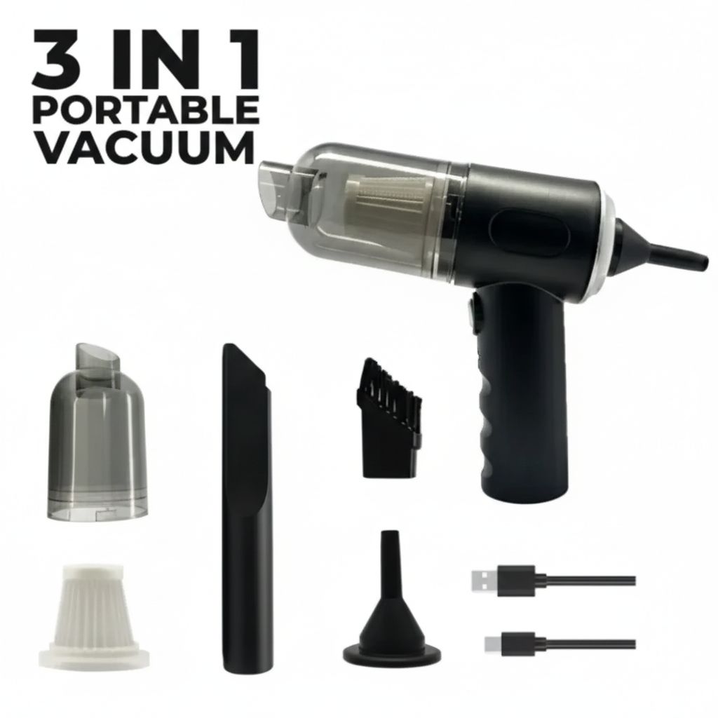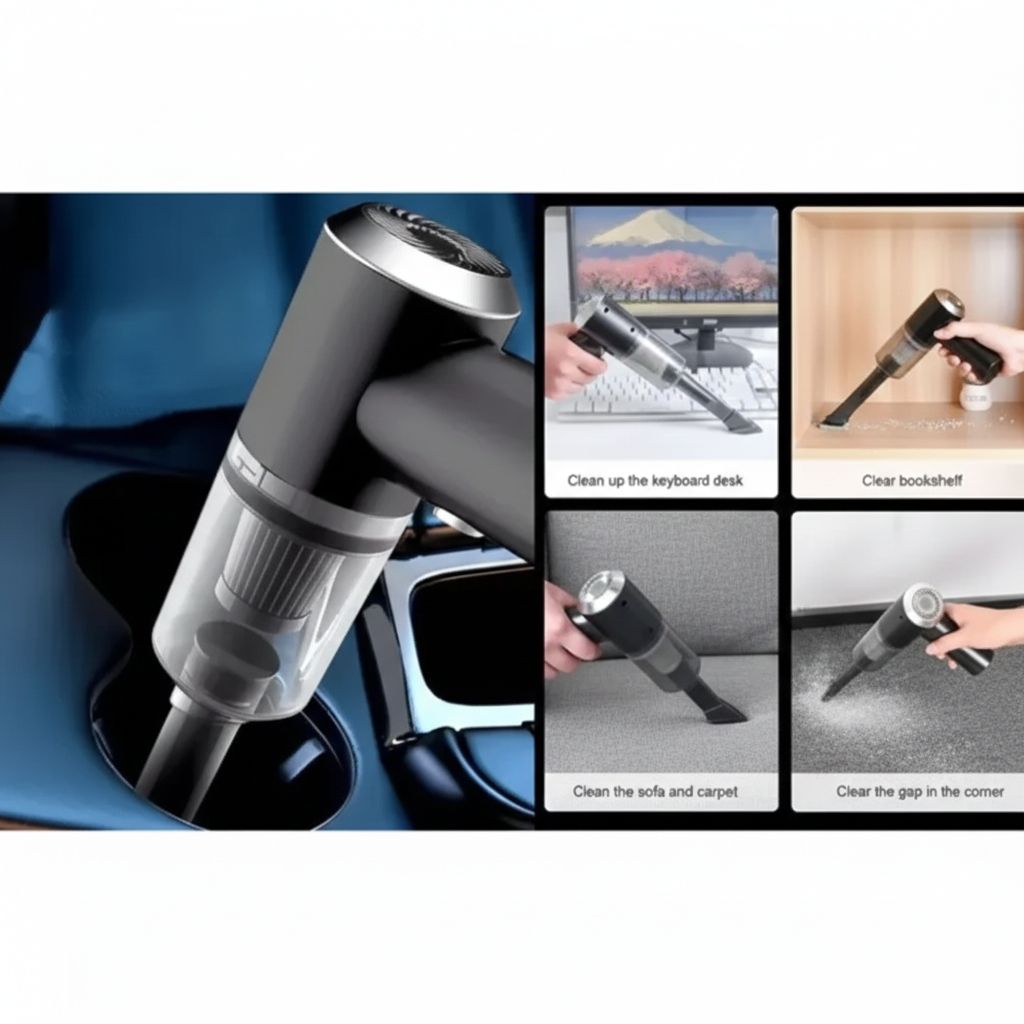 The Powerful Rechargeable 3-in-1 Dual Mode Cordless Handheld Vacuum Cleaner combines convenience and efficiency in one portable design. With strong suction power, it effortlessly tackles wet and dry messes across various surfaces like carpets, sofas, and car interiors. The built-in LED light enhances visibility for precise cleaning, while the lightweight, cordless feature ensures ease of use. Perfect for home, office, or on-the-go cleaning, this versatile tool offers powerful performance and convenience.